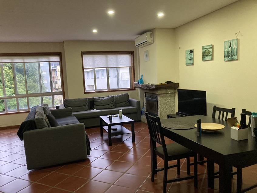 Quarto em apartamento pequeno, com sala e cozinha. Transportes e metro à porta