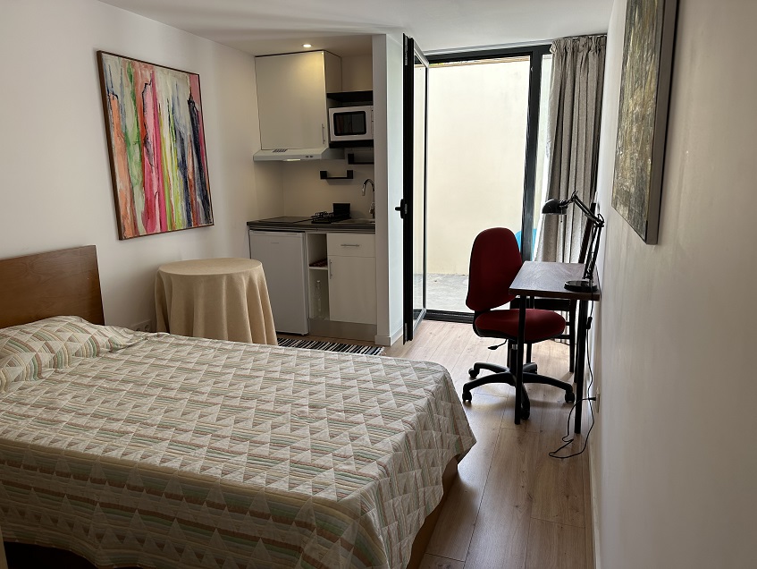 Apartamento T0 para estudantes no polo universitário. Equipado com cozinha, WC e um logradouro